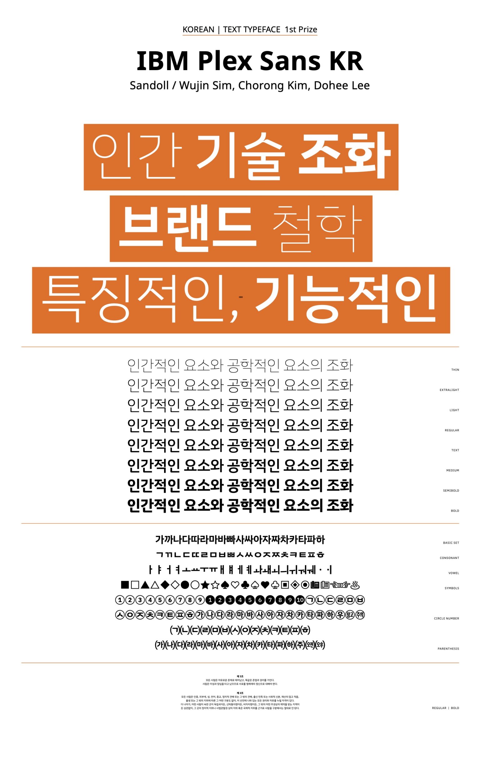 The concept of this typeface is a harmony of two styles: “mankind-natural” design and “machine-engineered” design based on the client’s brand design principles. When examining the details, first, in the ‘ , , ’ series, a refined ᄎᄌᄉ connection that seems to be systematized based on the writing form structure harmoniously blends natural and engineered styles. Second, in the ‘ , ’ series, a combination of smooth outer curves and ᄒᄋ mechanically systematized inner curves creates a unique impression. In addition, a strong ink trap is applied at the connection of the straight line and curve of ‘ ’ to maintain personality while ensuring consistent gray ᄒ balance. Third, the bottom ‘ , , , ’ are composed of a rounded left bottom and ᄇᄆᄅᄂ a squared inner part, creating a smooth and robust structure. Thus, this typeface is flexible, allowing for individualistic expression when used on a large scale and ensuring readability when used on a small scale, making it suitable for various situations.