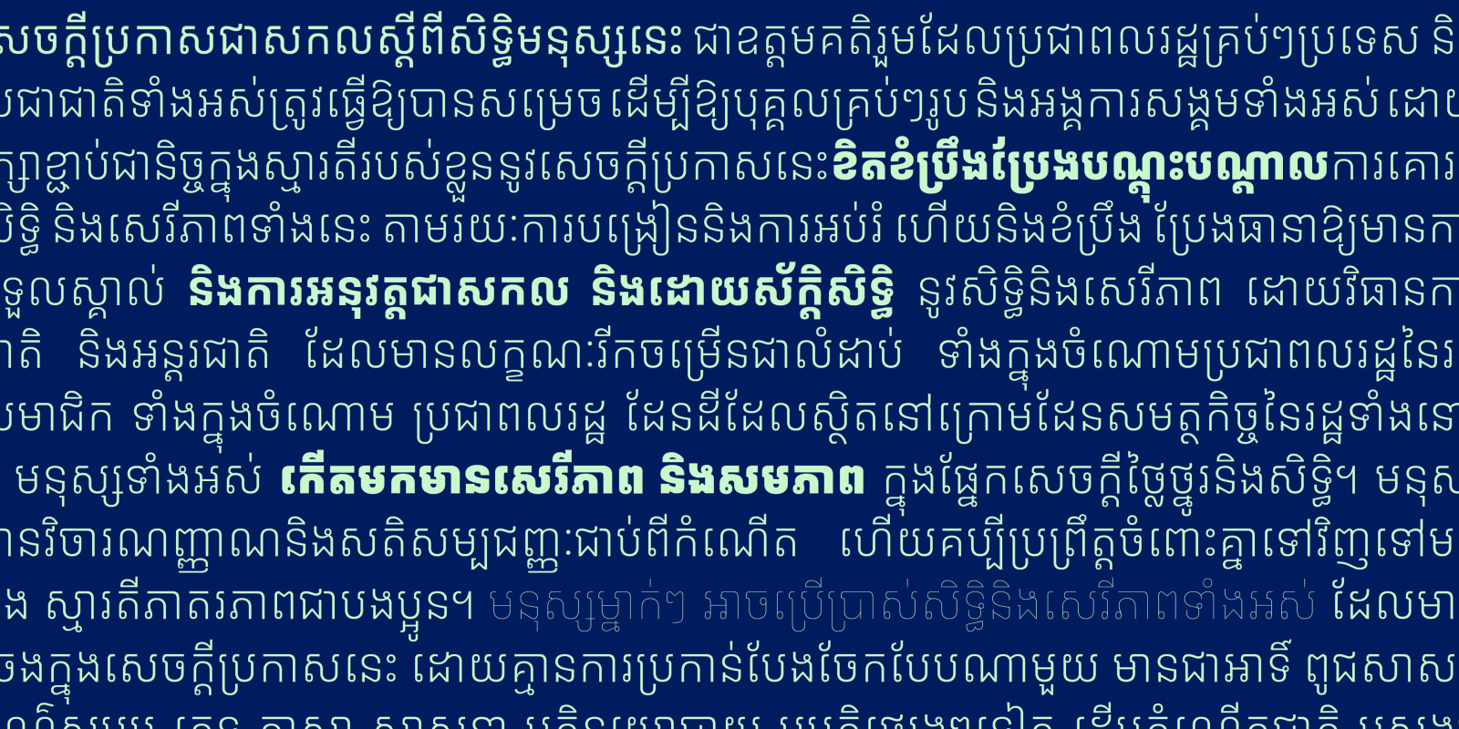 The Khmer script is the formal script for writing Khmer language which is spoken by more than 18 million people. The script has a rich history dating back to the seventh century, with the earliest known inscription recorded in 611 CE. Derived from the Pallava script of southern India, it was officially recognized as »Kāmvujākṣara« (កម្វុជាក្ឞរ) during the late ninth-century reign of King Yasovarman I of the Khmer Empire.