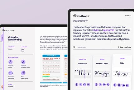 Primarium is a pioneering educational project by Sensei Lab and TypeTogether which studied the methods of Latin script-based handwriting instruction for primary school children, spanning five continents and about one-quarter of the world.