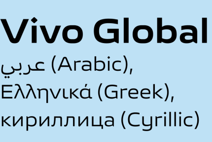 TypeTogether was commissioned to create a multiscript customised update of vivo Type, adding Arabic, Cyrillic, and Greek to the Latin alphabet.